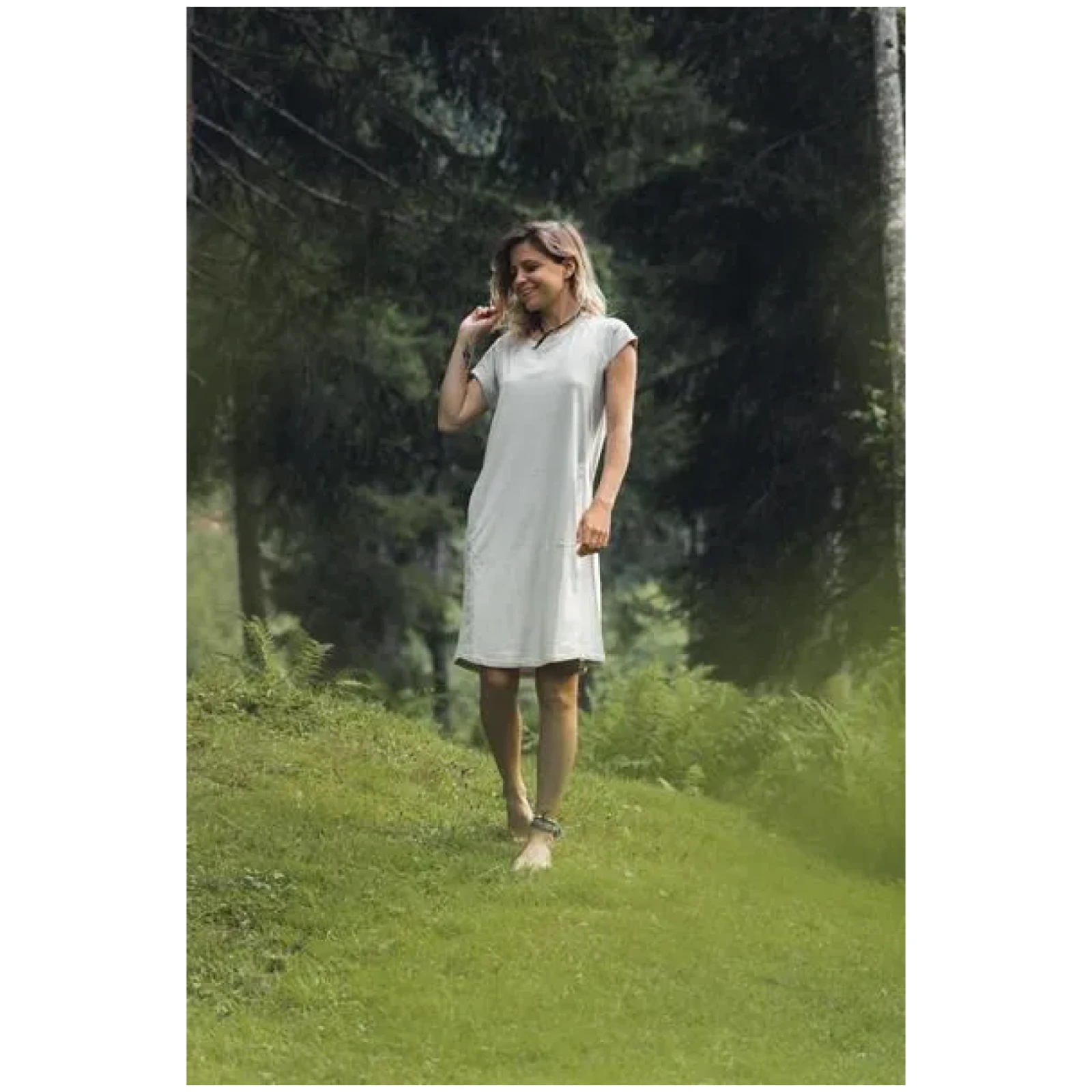 El vestido Dot L para mujer es la opción ideal para los cálidos días de verano, cuando quieres combinar comodidad con elegancia sencilla. El corte holgado proporciona libertad natural de movimiento al caminar, viajar y en el uso diario en la ciudad. El diseño minimalista complementado con un práctico bolsillo crea una pieza atemporal y fácil de combinar para el armario de verano.