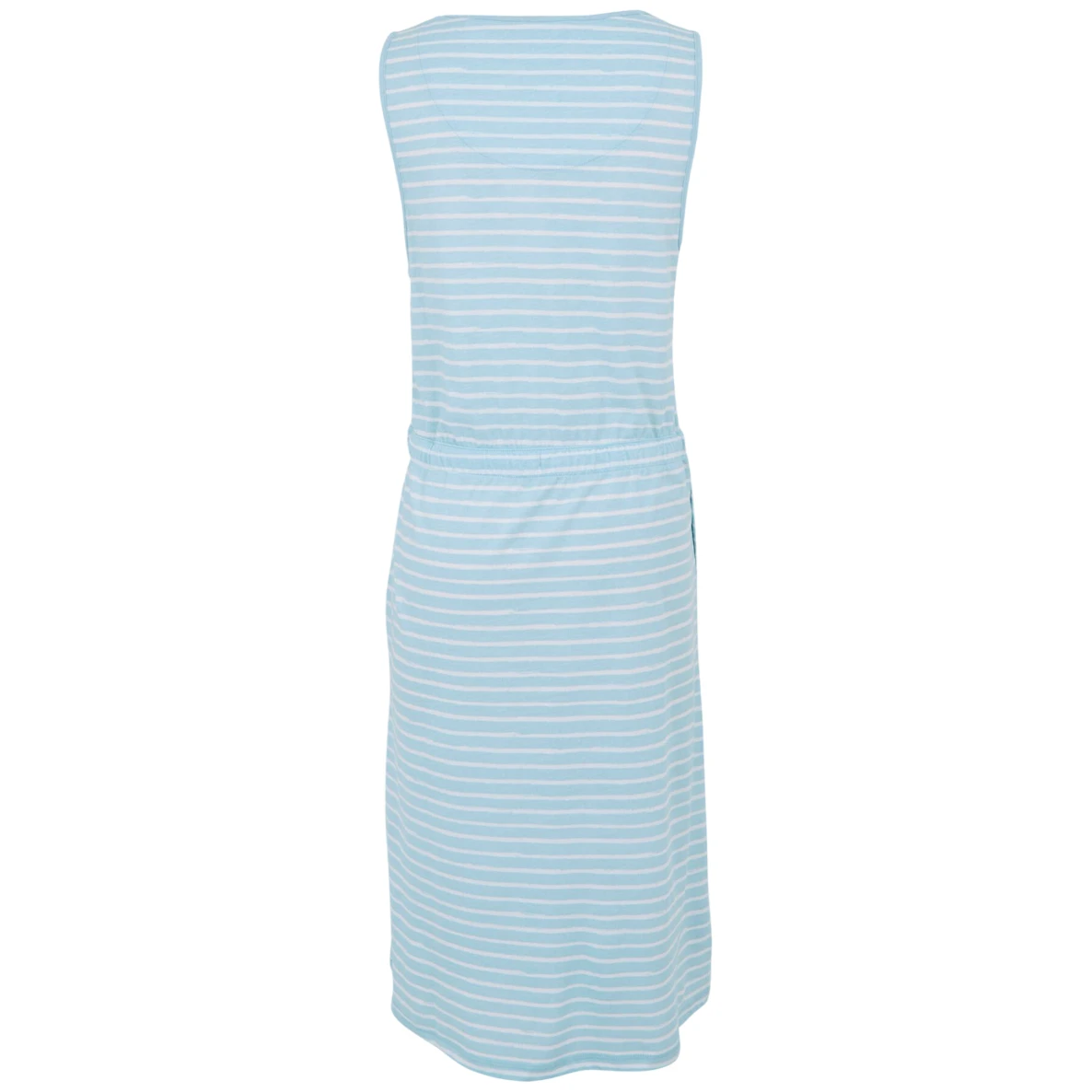 La cintura elástica con cordón realza maravillosamente la silueta y, al mismo tiempo, se adapta fácilmente. Gracias a su corte sencillo y cuello redondo, el vestido se combina fácilmente con zapatillas deportivas y sandalias.